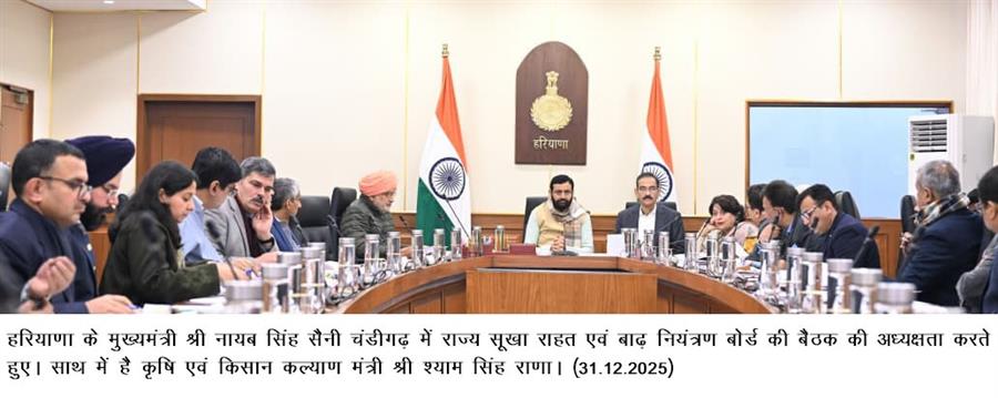 मानसून से पहले सभी ड्रेनों की सफाई समय रहते सुनिश्चित की जाए : मुख्यमंत्री नायब सिंह सैनी December 31, 2025
