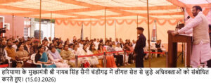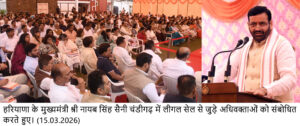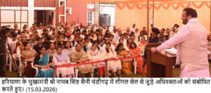 चंडीगढ़, 15 मार्च : हरियाणा के मुख्यमंत्री नायब सिंह सैनी ने कहा कि वकालत केवल आजीविका का माध्यम नहीं, बल्कि न्याय, मानवता और जनसेवा का सशक्त दायित्व है। उन्होंने कहा कि वकील लोकतंत्र की न्यायिक व्यवस्था के महत्वपूर्ण स्तंभ हैं, जो न केवल समाज के कमजोर, वंचित और जरूरतमंद वर्गों को न्याय दिलाने में अहम भूमिका निभाते हैं, बल्कि सामाजिक परिवर्तन, नैतिक मूल्यों की स्थापना और राष्ट्र निर्माण में भी अग्रणी योगदान देते हैं।