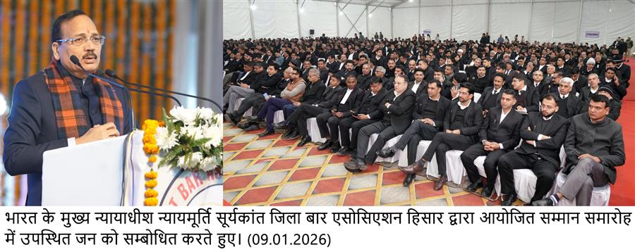 चंडीगढ़ 9 जनवरी : भारत के माननीय मुख्य न्यायाधीश न्यायमूर्ति सूर्यकांत ने कहा कि बदलते अपराध स्वरूप और वैश्विक स्तर पर उभरती नई चुनौतियों का सामना करने के लिए अधिवक्ताओं, विशेषकर युवा वकीलों को स्वयं को निरंतर अपडेट रखना होगा। यदि अधिवक्ता ई-लाइब्रेरी, डिजिटल संसाधनों और आधुनिक तकनीक से लैस होंगे, तो न केवल उनकी कार्यक्षमता बढ़ेगी बल्कि न्याय वितरण की प्रक्रिया भी अधिक प्रभावी बनेगी।