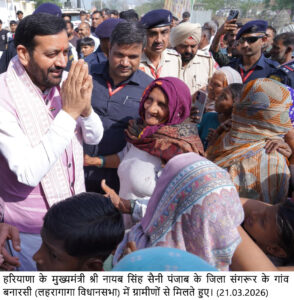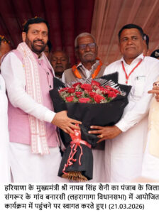 हरियाणा के मुख्यमंत्री नायब सिंह सैनी शनिवार को पंजाब के लहरागागा के गांव बनारसी में युवा नेता राकेश सिंह गिल द्वारा आयोजित जनसभा को संबोधित कर रहे थे। इस जनसभा में राकेश सिंह गिल ने अपने समर्थकों सहित मुख्यमंत्री की मौजूदगी में भाजपा का दामन थामा।