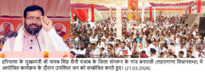 हरियाणा सरकार की जनकल्याणकारी नीतियों का जिक्र करते हुए मुख्यमंत्री नायब सिंह सैनी ने कहा कि प्रधानमंत्री नरेंद्र मोदी के नेतृत्व में देश में जो विकास, विश्वास और निर्णायक शासन की परंपरा बनी है, हरियाणा उसका सशक्त उदाहरण है। हरियाणा में यह सिद्ध कर दिखाया है कि जब केंद्र और राज्य में एक ही सोच वाली सरकार होती है, तो विकास की गति कई गुणा तेज हो जाती है।