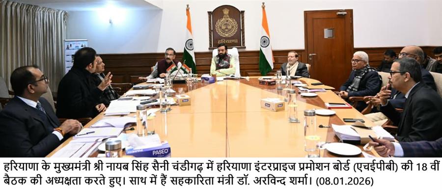 चंडीगढ़, 08 जनवरी : हरियाणा उद्यम प्रोत्साहन बोर्ड (HEPB) की 18वीं बैठक वीरवार को चंडीगढ़ में मुख्यमंत्री नायब सिंह सैनी की अध्यक्षता में आयोजित की गई। बैठक में प्रदेश में औद्योगिक निवेश एवं रोजगार सृजन को बढ़ावा देने के उद्देश्य से विभिन्न औद्योगिक इकाइयों को विशेष प्रोत्साहन पैकेज एवं राहत प्रदान करने संबंधी निर्णय लिए गए।
