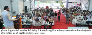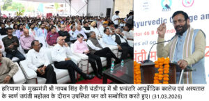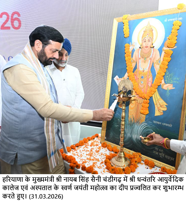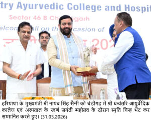 चंडीगढ़, 31 मार्च। हरियाणा के मुख्यमंत्री नायब सिंह सैनी ने चंडीगढ़ में आयोजित श्री धन्वंतरि आयुर्वेदिक कॉलेज एवं अस्पताल के स्वर्ण जयंती समारोह को संबोधित करते हुए कहा कि आधुनिक जीवनशैली से उत्पन्न तनाव, मधुमेह, उच्च रक्तचाप और अन्य जीवनशैली संबंधी रोगों के समाधान में आयुर्वेद एक प्रभावी और टिकाऊ विकल्प प्रदान करता है। आयुर्वेद में शारीरिक स्वास्थ्य के साथ-साथ मानसिक और आध्यात्मिक संतुलन पर भी बल दिया जाता है।