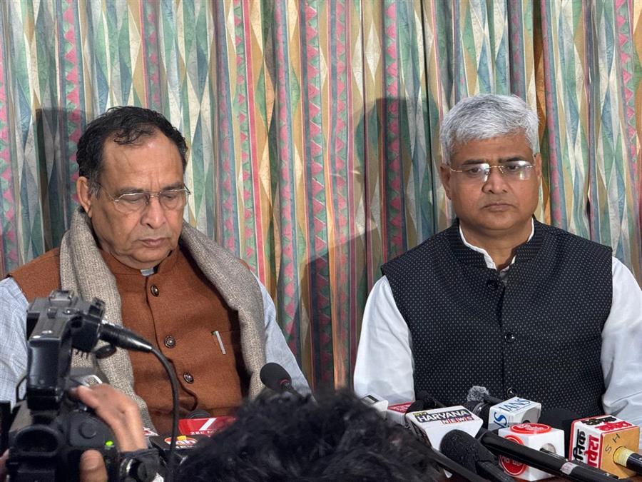दिल्ली, 17 जनवरी। हरियाणा भाजपा प्रदेश अध्यक्ष पंडित मोहन लाल बड़ौली ने शनिवार को दिल्ली स्थित हरियाणा भवन में प्रेसवार्ता कर पश्चिम बंगाल की ममता सरकार पर तीखा हमला बोला। उन्होंने कहा कि पश्चिम बंगाल की धरती ममता सरकार में भय, दबाव और राजनीतिक हिंसा की प्रयोगशाला बना दी गई है। टीएमसी नेताओं की धमकी के कारण बीएलओ अशोक दास को आत्महत्या जैसा दुर्भाग्यपूर्ण कदम उठाना पड़ा। भाजपा प्रदेश अध्यक्ष पंडित मोहन लाल बड़ौली ने बताया कि हरियाणा में आगामी दिनों में वीबी-जीरामजी पर सम्मेलन रखे गए हैं। जिला व मंडल स्तर पर सम्मेलन होंगे इस विषय में सभी सांसद और विधायक भी सम्मेलनों में सम्मिलत होंगे। प्रेसवार्ता के हरियाणा भाजपा प्रदेश प्रवक्ता राजकुमार कटारिया भी उपस्थित रहे।