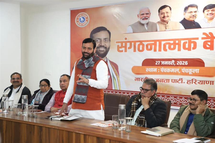 चंडीगढ़। पंचकूला स्थित भारतीय जनता पार्टी के पंचकमल कार्यालय पर हुई एक बड़ी संगठनात्मक बैठक में नगर निगम चुनावों में बड़े मार्जिन से जीत दर्ज करने और वीबी जीरामजी पर सभी विधान सभाओं में केंद्र के निर्देशानुसार जल्द से जल्द सम्मेलन करने, सभी बूथों पर बीएलए 2 की जल्दी से जल्दी नियुक्त किए जाने और मन की बात कार्यक्रम को और अधिक लोगों से जोड़ने को लेकर भाजपा ने अनेक महत्वपूर्ण फैसले लिए गए। यहां मुख्यमंत्री नायब सिंह सैनी, प्रदेश अध्यक्ष पंडित मोहनलाल बडौली और प्रदेश प्रभारी डाक्टर सतीश पूनिया ने एक-एक विषय को उपस्थित नेताओं के सामने बड़ी बारिकी से रखा। बैठक में मौजूद विधायकों, प्रदेश पदाधिकारियों, जिला अध्यक्षों, जिला प्रभारियों और मोर्चा पदाधिकारियों को स्पष्ट कहा गया कि कांग्रेस द्वारा विभिन्न कल्याणकारी योजनाओं पर फैलाए जा रहे हर झूठ को बेनकाब करते हुए नगर निगम चुनावों में फिर से ऐतिहासिक जीत दर्ज करनी है और पार्टी की मजबूती के लिए भी लगातार दिए जा रहे कार्य भी पूरे करने हैं। खासकर विधायकों को कहा गया कि वे विधानसभाओं में वीबी जीरामजी पर पांच पांच जागरूकता सम्मेलन करें।