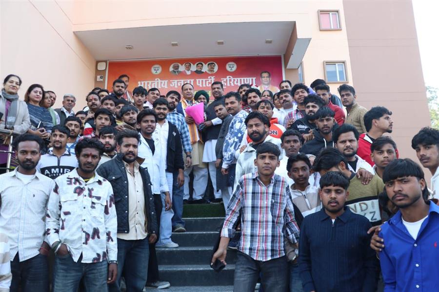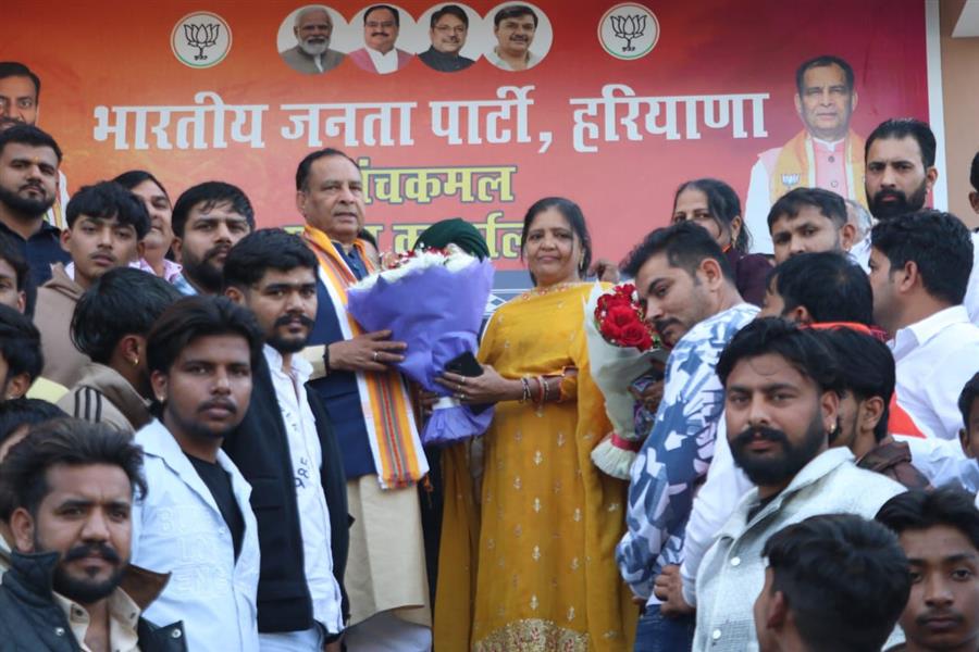 पंचकूला, 15 दिसंबर। भारतीय जनता पार्टी के प्रदेश अध्यक्ष पंडित मोहन लाल बड़ौली की उपस्थिति में सोमवार को पंचकूला स्थित पार्टी प्रदेश कार्यालय पंचकमल में सैकड़ों लोग भाजपा में शामिल हुए। बड़ौली ने भाजपा में शामिल हुए सभी नए साथियों को पार्टी का पटका पहनाकर स्वागत किया। श्री बड़ौली ने कहा कि सभी नए साथियों को पार्टी में पूरा मान और सम्मान मिलेगा।