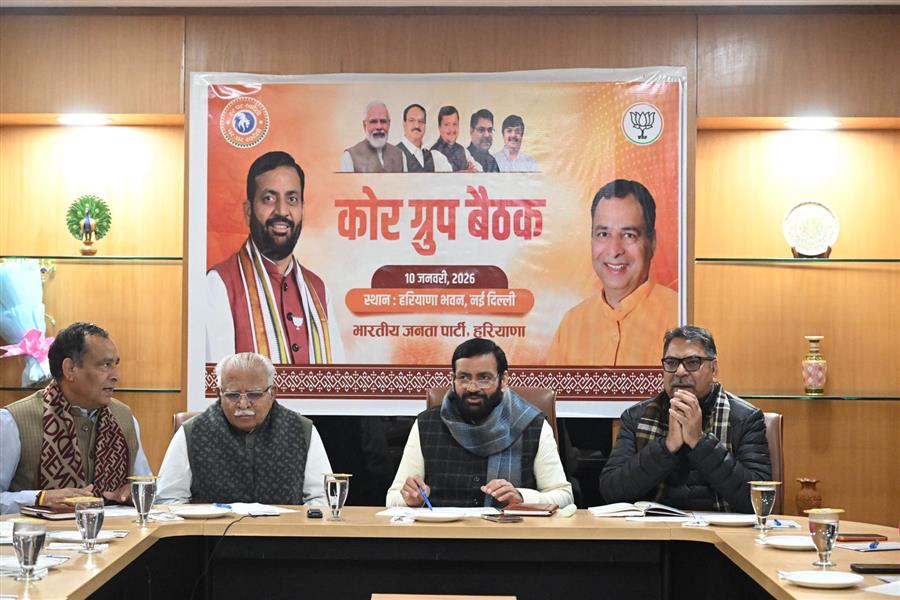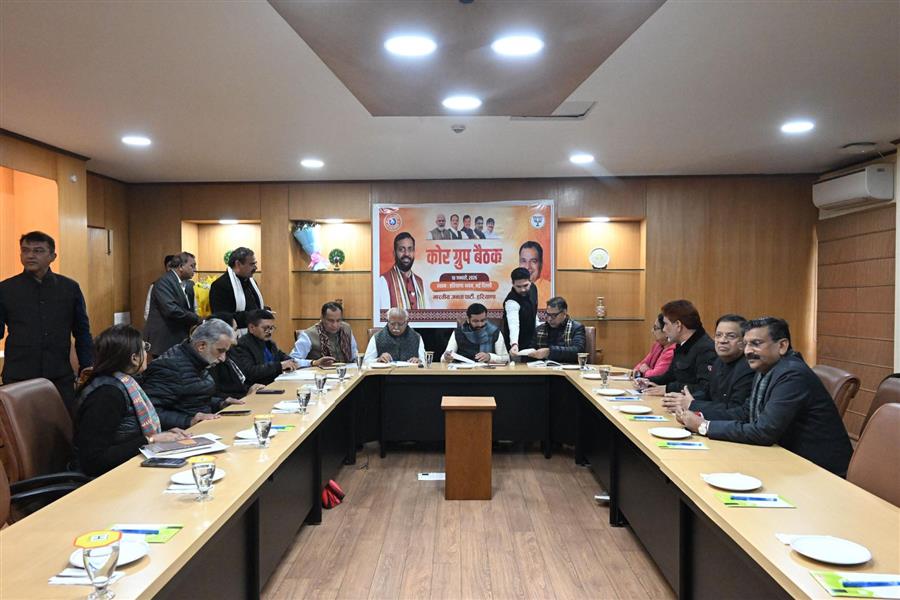 चंडीगढ़, 10 जनवरी। दिल्ली के हरियाणा भवन में हुई हरियाणा भाजपा कोर ग्रुप की बैठक में लगभग एक दर्जन विषयों पर डेढ़ घंटे तक मंथन चला। मुख्यमंत्री नायब सिंह सैनी, प्रदेश अध्यक्ष मोहन लाल बड़ौली, प्रदेश प्रभारी डा. सतीश पूनिया, केंद्रीय मंत्री मनोहर लाल सहित तमाम दिग्गज नेताओं ने बिंदुवार हर मुद्दे को बैठक में रखा और गहनता से उस पर चर्चा की। इस बैठक में वर्तमान में चल रहे सात कार्यक्रमों की समीक्षा भी की गई। बैठक में तीन नगर निगमों के चुनाव, हरियाणा के आगामी बजट, हरियाणा के राजनीतिक हालातों के साथ-साथ, कार्यकारी राष्ट्रीय अध्यक्ष के हरियाणा दौरे को लेकर भी विस्तार से बातचीत की।