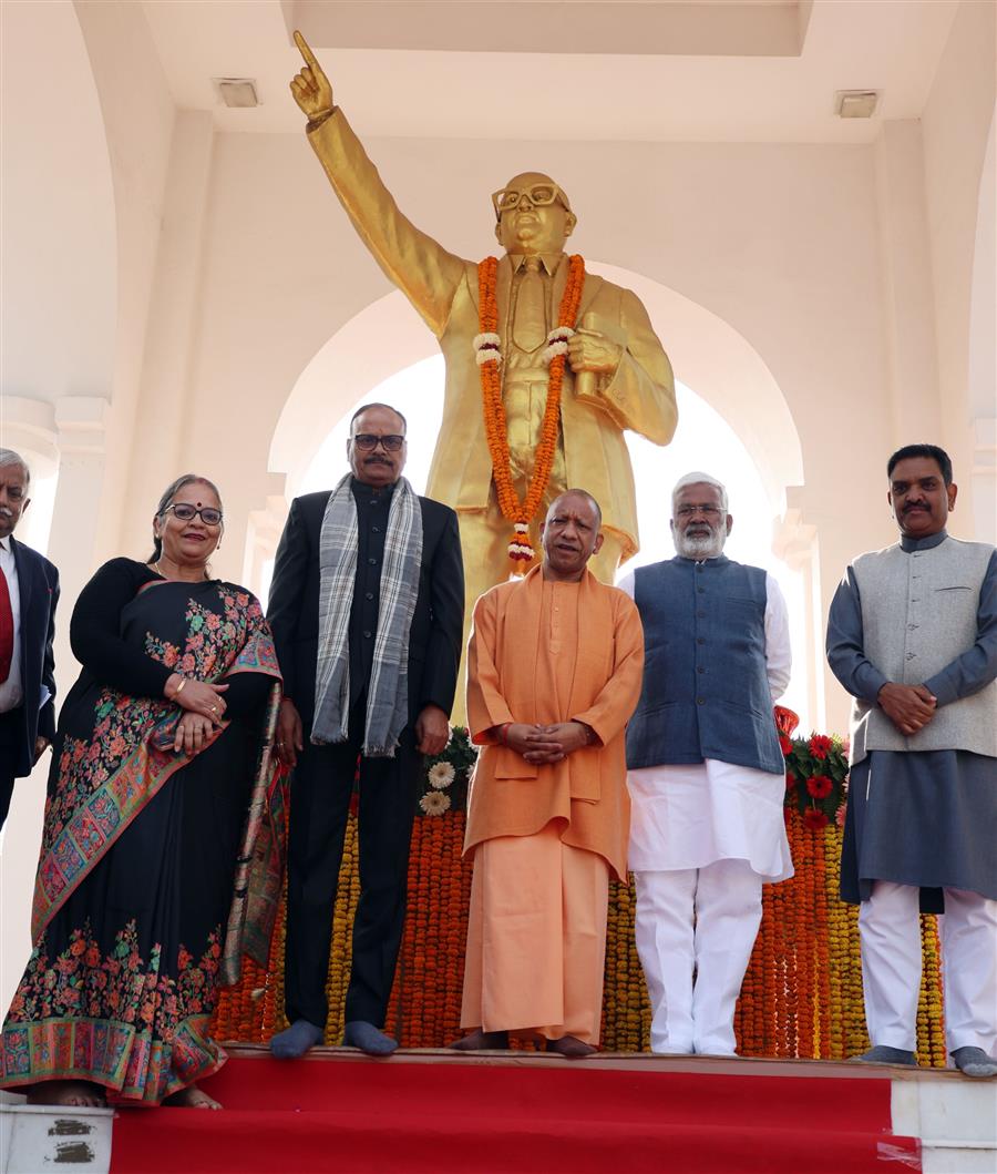 बाबा साहेब की मूर्ति के किनारे बनाए जाएंगे बाउंड्रीवाल व लगाए जाएंगे छत्र : योगी आदित्यनाथ