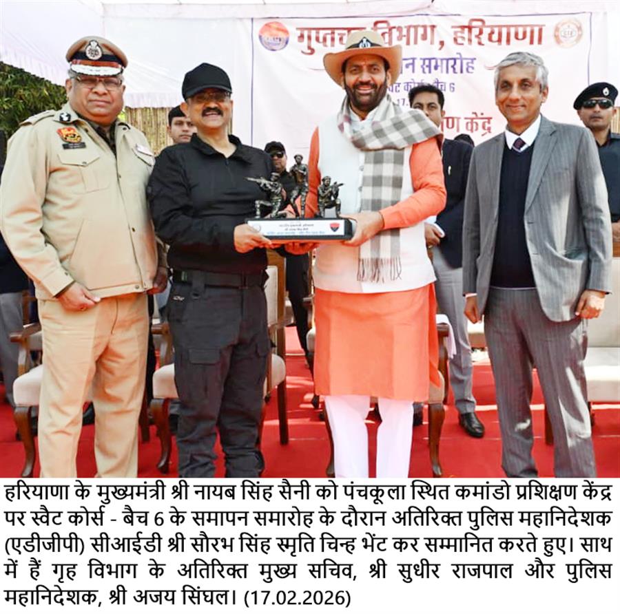 हरियाणा की कानून-व्यवस्था को देश में एक मॉडल के रूप में स्थापित करना सरकार का संकल्प : नायब सिंह सैनी February 17, 2026