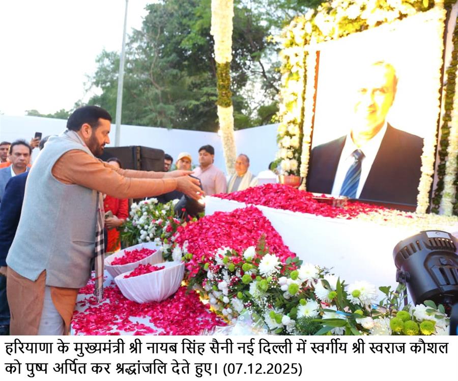 हरियाणा के मुख्यमंत्री ने मिजोरम के पूर्व राज्यपाल स्वराज कौशल के आकस्मिक निधन पर दी श्रद्धांजलि December 7, 2025
