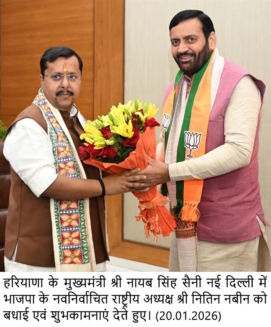 राष्ट्रीय अध्यक्ष नितिन नबीन भाजपा के विजय रथ को और अधिक तेज गति से आगे बढ़ाएंगे : नायब सिंह सैनी January 20, 2026