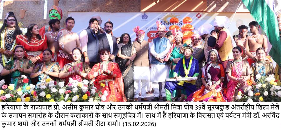 सूरजकुंड अंतरराष्ट्रीय आत्मनिर्भर शिल्प महोत्सव प्रधानमंत्री के आत्मनिर्भर भारत विजन का जीवंत उदाहरण : राज्यपाल प्रो. असीम कुमार घोष February 15, 2026