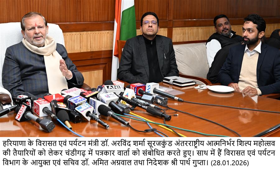 उपराष्ट्रपति सी.पी. राधाकृष्णन 31 जनवरी को करेंगे फरीदाबाद में सूरजकुंड अंतर्राष्ट्रीय आत्मनिर्भर शिल्प महाकुंभ का उद्घाटन : डॉ. अरविंद शर्मा January 28, 2026