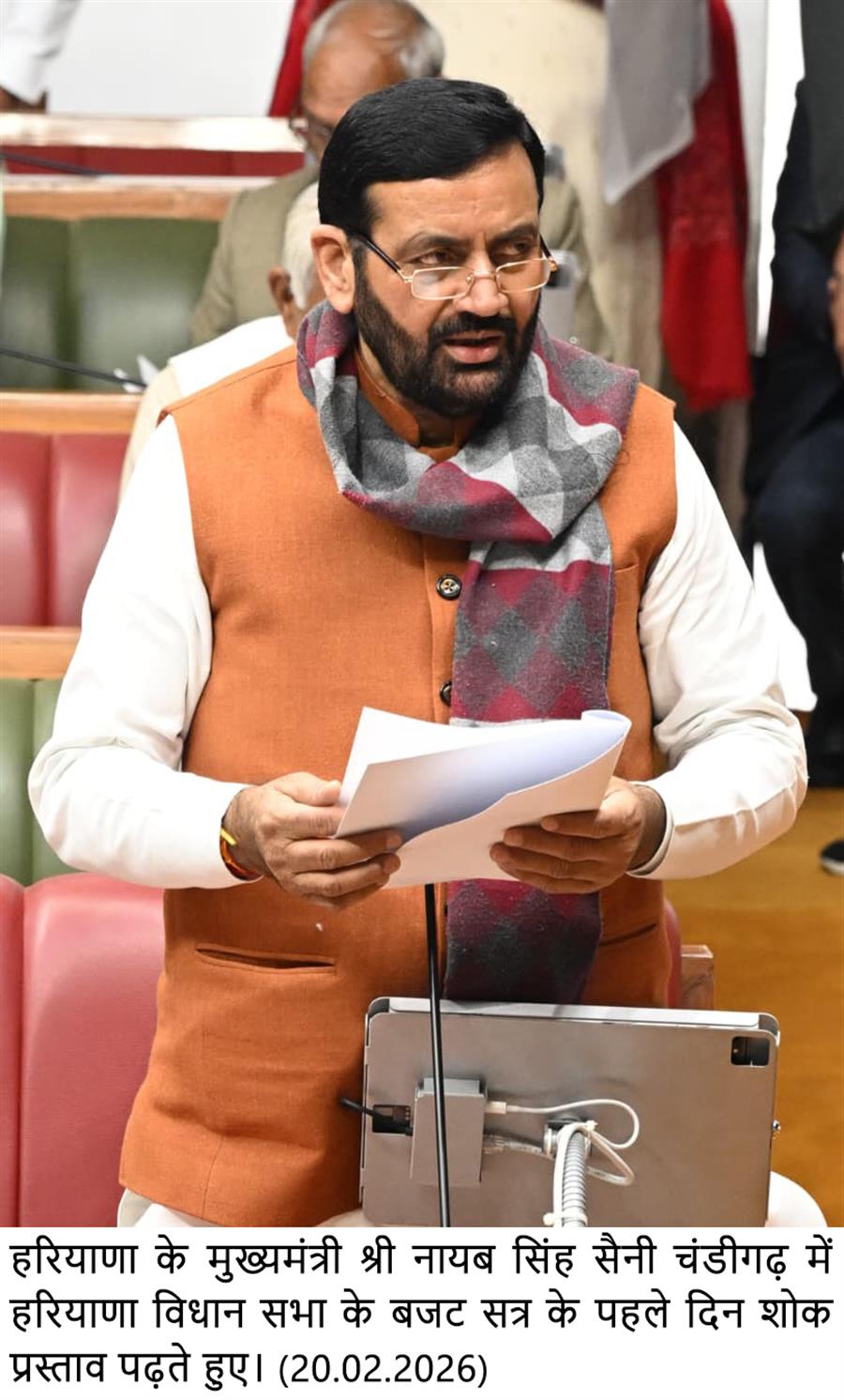 हरियाणा विधानसभा के बजट सत्र के प्रथम दिन महान विभूतियों एवं वीर सैनिकों को दी श्रद्धांजलि February 20, 2026