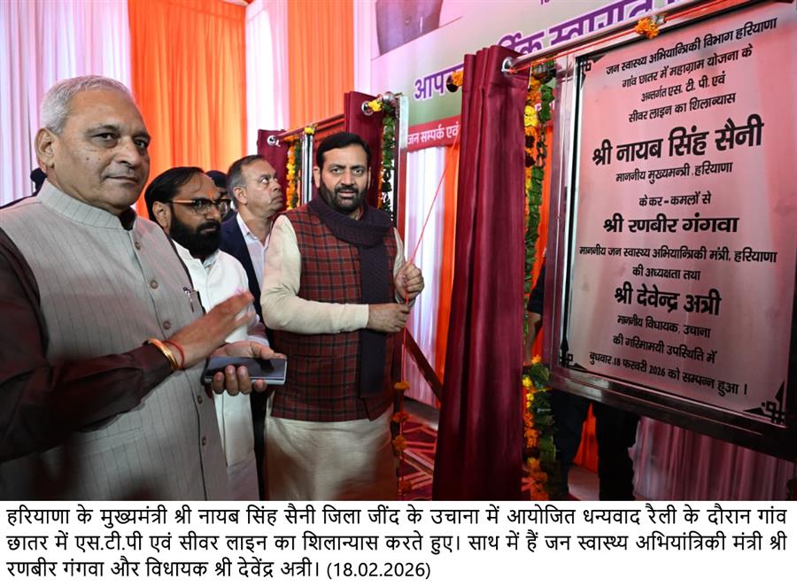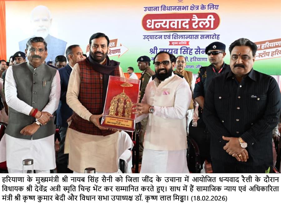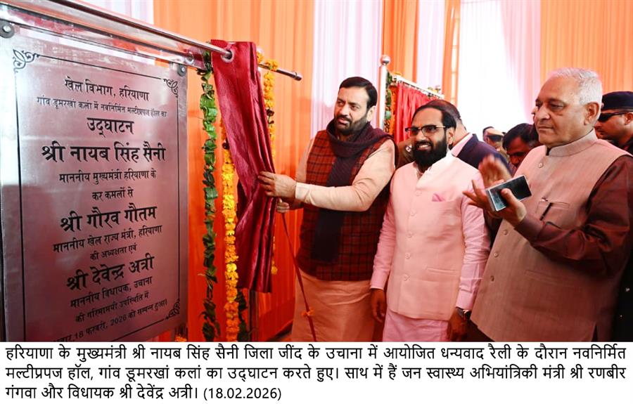मुख्यमंत्री नायब सिंह सैनी ने उचाना में 103.30 करोड़ रुपये की विकास परियोजनाओं को दी सौगात February 18, 2026