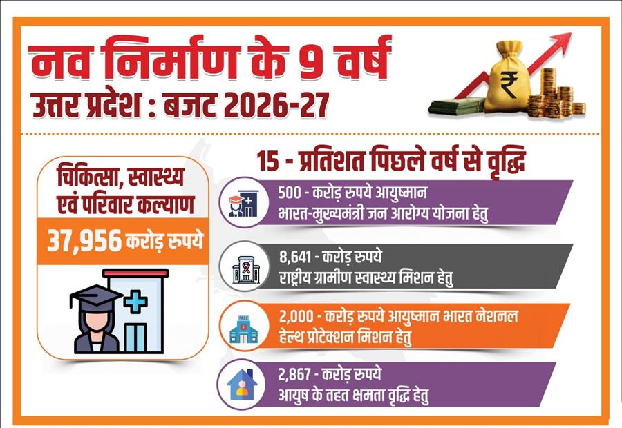 योगी सरकार ने चिकित्सा, स्वास्थ्य एवं परिवार कल्याण को दिये 37,956 करोड़, बजट में 15% की बढ़ोत्तरी February 11, 2026