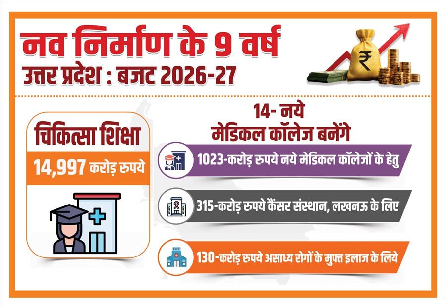 योगी सरकार ने 14,997 करोड़ रुपये के रिकॉर्ड बजट से चिकित्सा शिक्षा और शोध को दी सर्वोच्च प्राथमिकता February 11, 2026