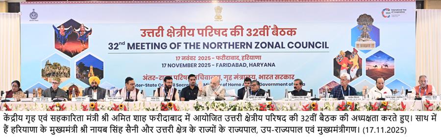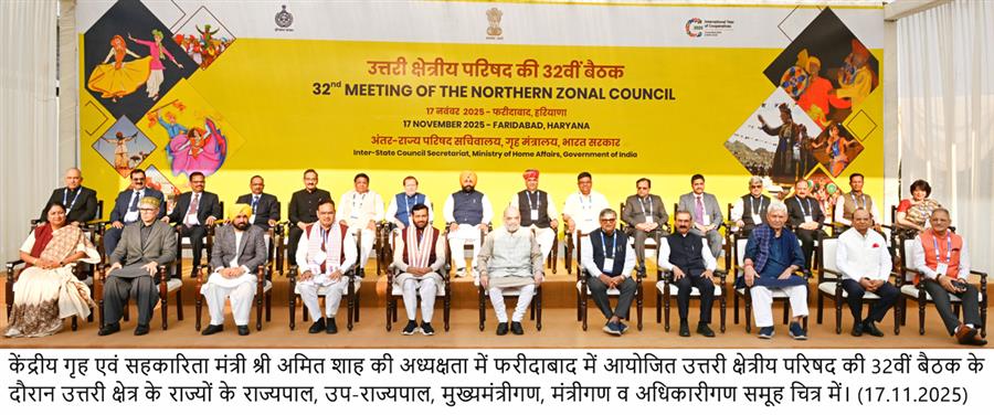 केन्द्रीय गृह एवं सहकारिता मंत्री अमित शाह सोमवार को फरीदाबाद, हरियाणा में उत्तरी क्षेत्रीय परिषद की 32वीं बैठक की अध्यक्षता करेंगे November 17, 2025