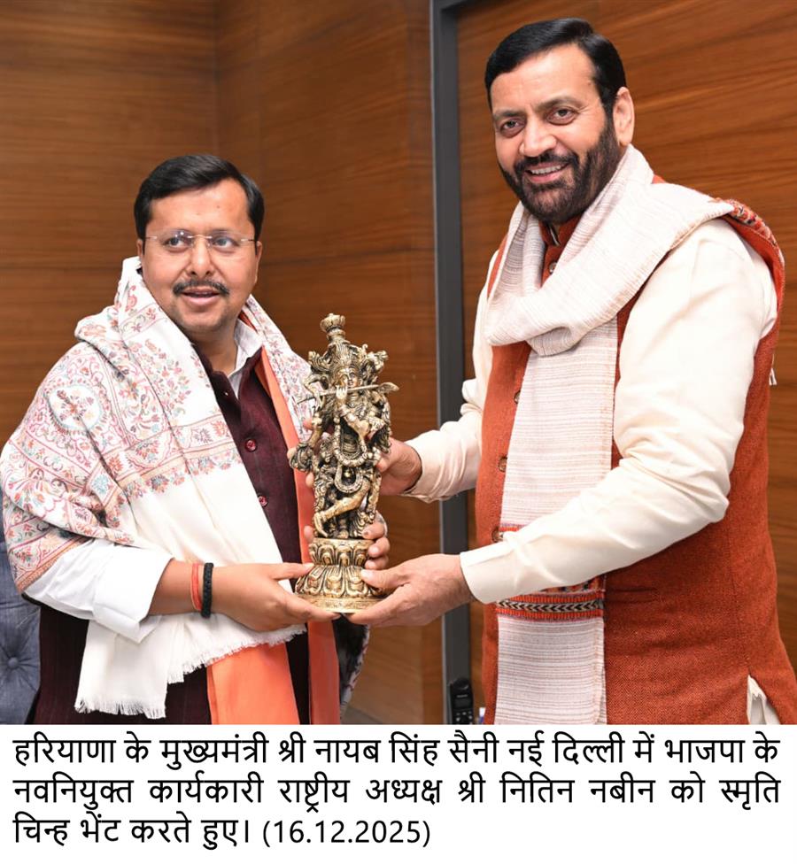 कार्यकारी राष्ट्रीय अध्यक्ष नितिन नबीन के नेतृत्व में भाजपा ऊंचाई के नए शिखर को छुएगी : नायब सिंह सैनी December 16, 2025