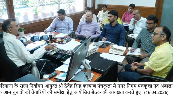 नगर निगम पंचकूला व अंबाला चुनाव की तैयारियां समयबद्ध रूप से पूर्ण करें : देवेंद्र सिंह कल्याण April 16, 2026