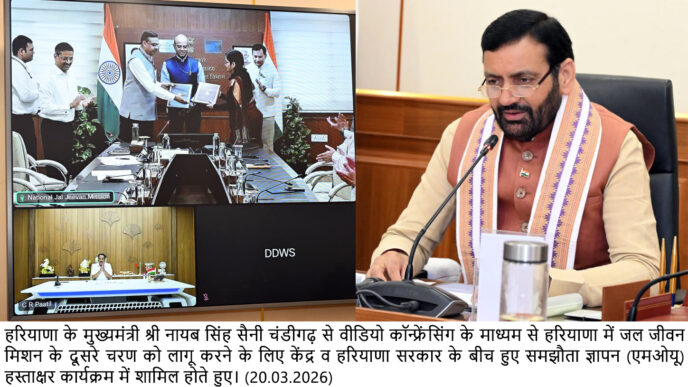 केंद्र-राज्य के बीच एमओयू से हर घर स्वच्छ जल के लक्ष्य को मिलेगी नई गति : नायब सिंह सैनी March 20, 2026