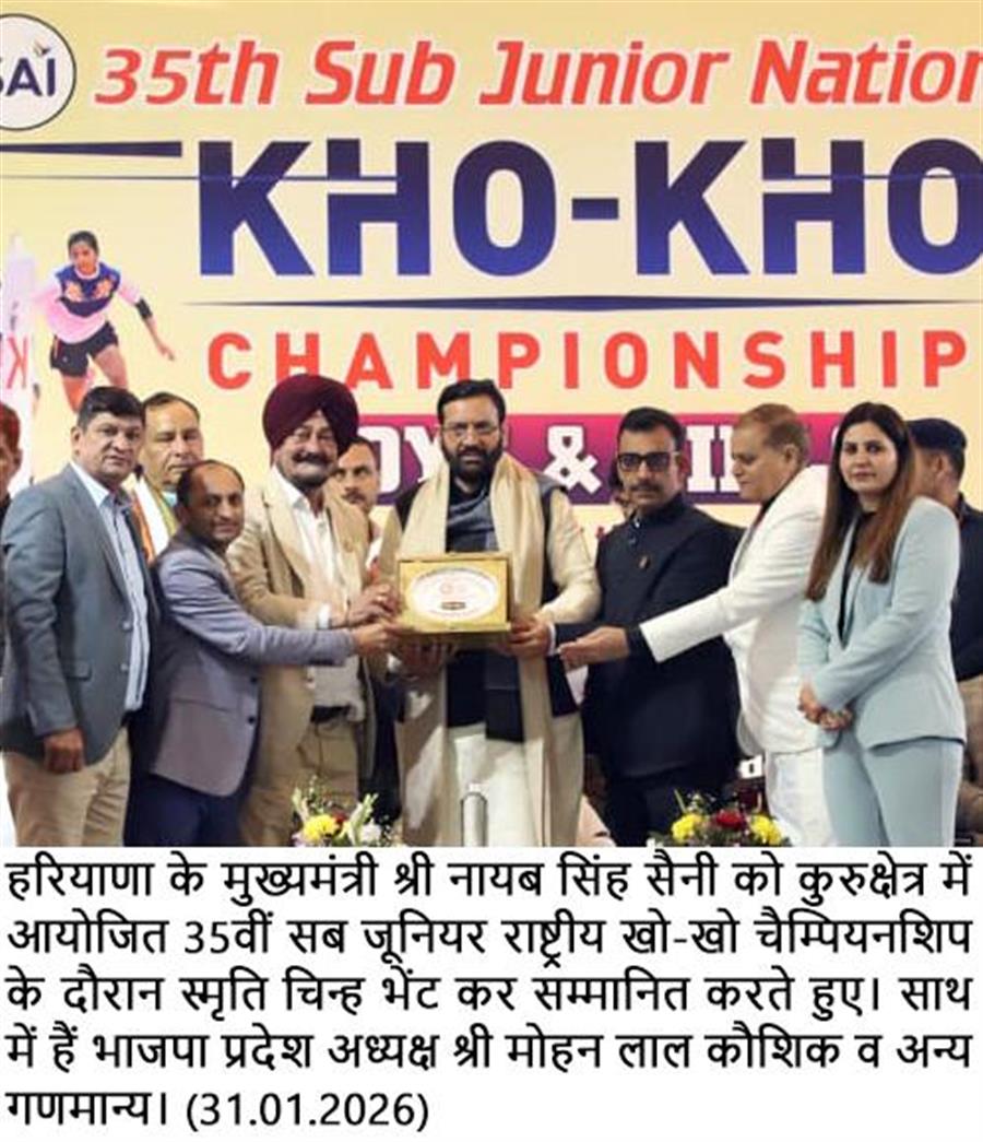 38वें राष्ट्रीय खेल के पदक विजेताओं को मुख्यमंत्री नायब सिंह सैनी 9 फरवरी को करेंगे सम्मानित, सीएम कप का भी करेंगे शुभारंभ : खेल मंत्री गौरव गौतम February 5, 2026