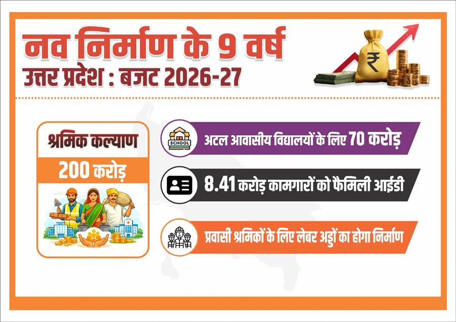 योगी सरकार का श्रमिकों पर बड़ा फोकस, उत्तर प्रदेश रोजगार मिशन समिति के गठन हेतु 200 करोड़ रुपये का प्रावधान February 11, 2026