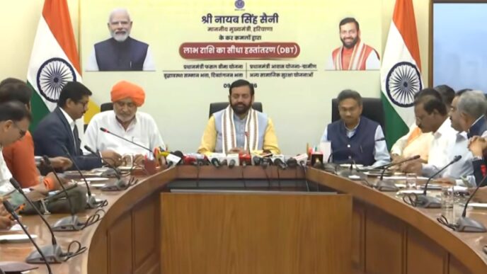 Chief Minister Nayab Singh Saini disbursing the amount to beneficiaries under various scheme March 9, 2026
