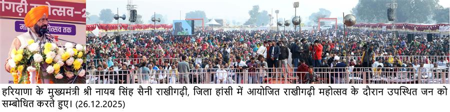 217 संकल्पों में से 54 पूरे, लाडो लक्ष्मी योजना से महिलाओं के सशक्तिकरण को मिली नई दिशा : नायब सिंह सैनी December 26, 2025