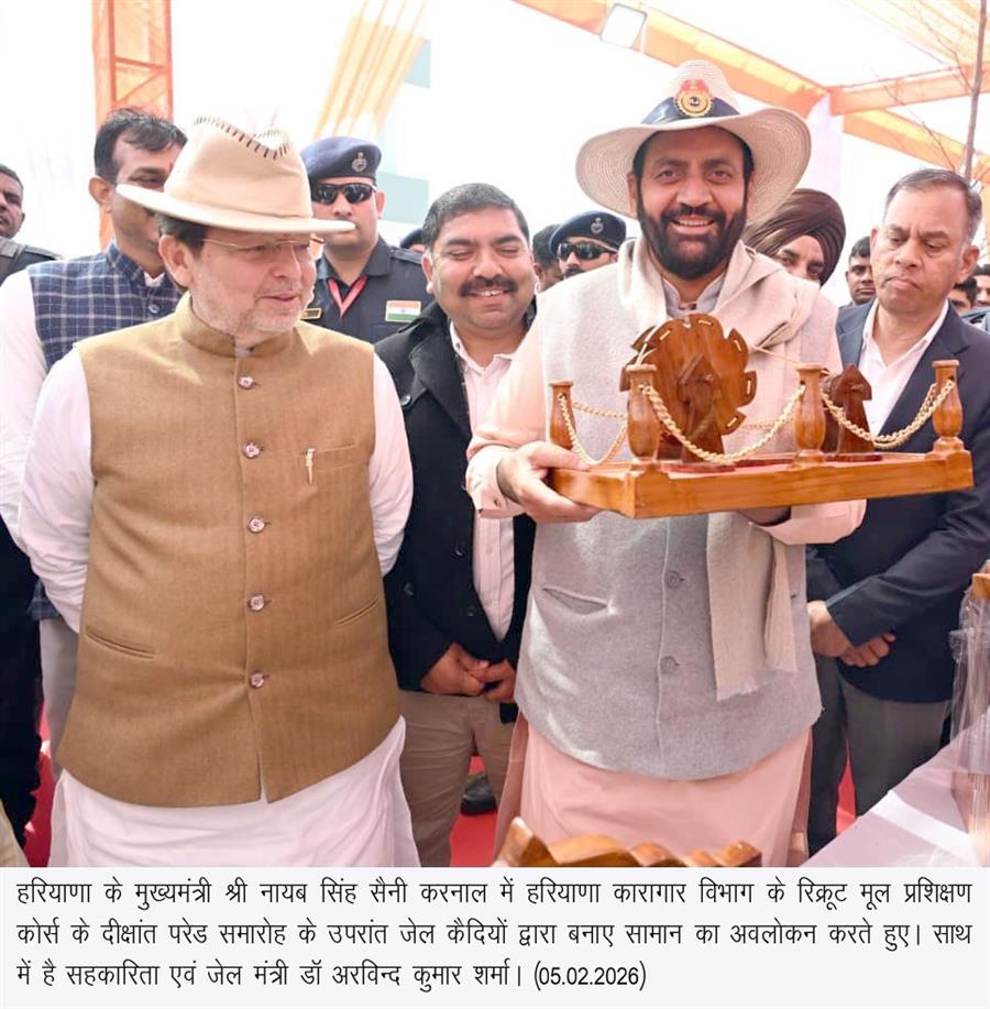 उन्होंने कहा कि दीक्षांत परेड किसी भी वर्दीधारी सेवा में केवल प्रशिक्षण की समाप्ति का प्रतीक नहीं होती, बल्कि यह उस मानसिक, शारीरिक और नैतिक रूपांतरण की घोषणा होती है, जिसके बाद एक प्रशिक्षु पूर्ण रूप से जिम्मेदार अधिकारी के रूप में समाज की सेवा हेतु तैयार होता है। उन्होंने कहा कि कारागार व्यवस्था किसी भी लोकतांत्रिक व्यवस्था का अत्यंत संवेदनशील और महत्वपूर्ण स्तंभ होती है। जेल केवल दंड देने का स्थान नहीं, बल्कि सुधार, पुनर्वास और मानवीय परिवर्तन की प्रयोगशाला होती है। हरियाणा सरकार इस विचारधारा में पूर्ण विश्वास रखती है कि अपराधी को दंड के साथ-साथ सुधार का अवसर देना समाज के दीर्घकालिक हित में है। इसी सोच के साथ हमारी सरकार जेल सुधारों, बंदी कल्याण और आधुनिक कारागार प्रबंधन को निरंतर सशक्त बना रही है।