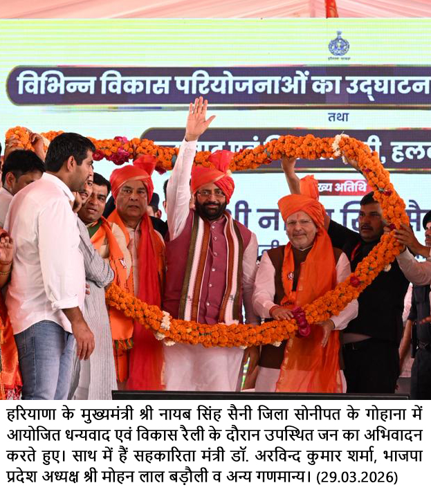 चंडीगढ़, 29 मार्च। हरियाणा के मुख्यमंत्री नायब सिंह सैनी ने रविवार को गोहाना विधानसभा क्षेत्र के लिए करोड़ों रुपये की विकास परियोजनाओं की घोषणा की। सरकार के पूरे राज्य में सबको साथ लेकर चलने वाले विकास और इंफ्रास्ट्रक्चर को बढ़ाने के अपने वादे को फिर से मजबूत किया।