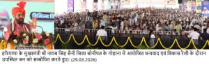 उन्होंने जनगणना, परिसीमन और एसआईआर का कार्य पूरा होने के बाद खानपुर कलां सब-तहसील को तहसील में अपग्रेड करने, बरोदा और फरमाना को सब-तहसील बनाने की भी घोषणा की। मुख्यमंत्री ने ग्राम पंचायतों के प्रस्ताव पर गांव गढ़ी उजालेखां का नाम बदलकर कृष्ण नगर और गांव गढ़ी नामदारखां का नाम सुंदर नगर रखने की भी घोषणा की।