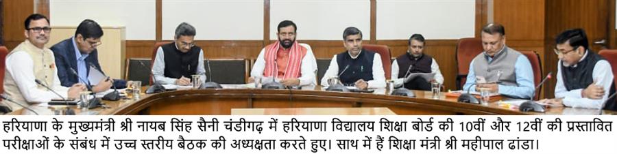 चंडीगढ़, 25 फरवरी : हरियाणा के मुख्यमंत्री नायब सिंह सैनी ने हरियाणा विद्यालय शिक्षा बोर्ड की 10वीं और 12वीं की प्रस्तावित परीक्षाओं के सुचारु एवं निष्पक्ष संचालन को लेकर उच्च स्तरीय बैठक ली। बैठक में प्रदेश के सभी जिला उपायुक्त और पुलिस अधीक्षक तथा हरियाणा विद्यालय शिक्षा बोर्ड के अध्यक्ष डॉ. पवन कुमार व अन्य अधिकारी भी वीडियो कॉन्फ्रेंस के माध्यम से जुड़े थे।