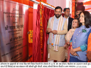 चंडीगढ़, 31 मार्च। हरियाणा के मुख्यमंत्री नायब सिंह सैनी ने मंगलवार को जिला भिवानी के तोशाम में आयोजित उन्नत सिंचाई उत्सव-2026 के दौरान क्षेत्र के समग्र विकास को गति देते हुए 107 करोड़ रुपये से अधिक लागत की विभिन्न विकास परियोजनाओं का उद्घाटन एवं शिलान्यास किया। इनमें 13 करोड़ 99 लाख रुपये की लागत से पूर्ण दो परियोजनाओं का उद्घाटन तथा 93 करोड़ 62 लाख रुपये की लागत से चार नई परियोजनाओं का शिलान्यास शामिल है। इन परियोजनाओं का उद्देश्य बिजली आपूर्ति को सुदृढ़ करना, शिक्षा सुविधाओं का विस्तार करना तथा ग्रामीण आधारभूत संरचना को मजबूत बनाना है।