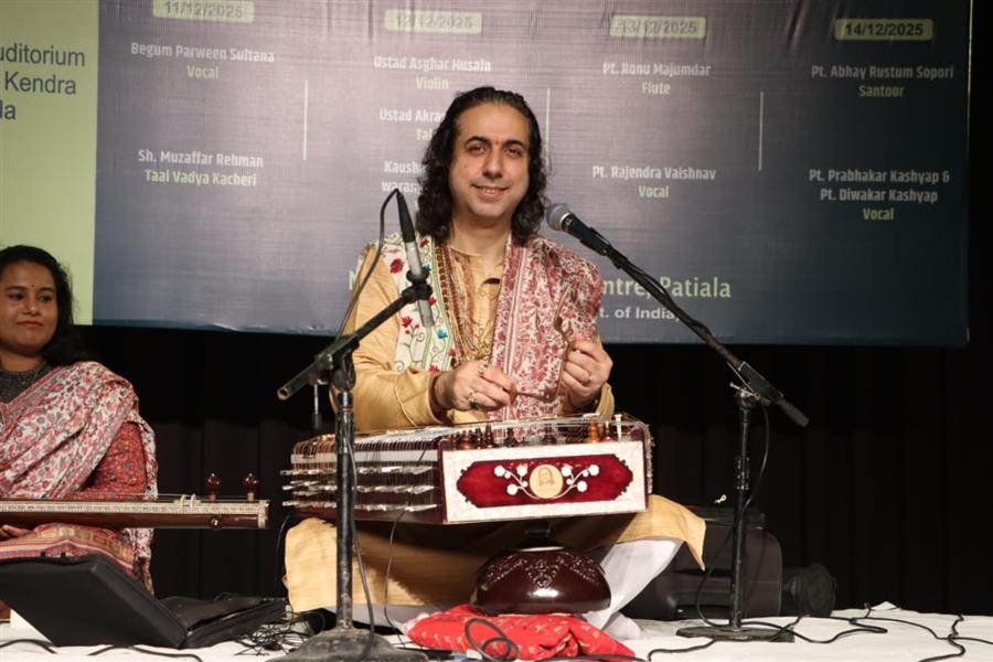 पटियाला : नॉर्थ ज़ोन कल्चरल सेंटर, पटियाला द्वारा आयोजित पटियाला संगीत समारोह के समापन दिवस पर कालिदास ऑडिटोरियम में एक ऐसी यादगार संगीत संध्या सजी, जिसने पूरे आयोजन को गरिमा और सौंदर्य के साथ पूर्णता प्रदान की। अंतिम दिन मंच साझा किया विश्वविख्यात संतूर वादक पं. अभय रुस्तम सोपोरी और बनारस घराने के कश्यप बंधुओं—पं. प्रभाकर कश्यप एवं पं. दिवाकर कश्यप ने। उनकी संयुक्त प्रस्तुति समारोह का केंद्रीय आकर्षण बनी और श्रोताओं ने इसे भाव-विभोर होकर सराहा। तबले पर पं. संजू सहाय और पखावज पर ऋषि शंकर उपाध्याय की सशक्त संगत ने पूरी प्रस्तुति को और अधिक प्रभावशाली बना दिया।