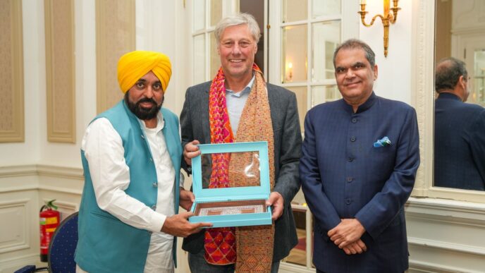 नीदरलैंड्स-इंडिया चैंबर ऑफ कॉमर्स एंड ट्रेड की चेयरपर्सन मिस एडिथ नॉर्डमैन के नेतृत्व वाले प्रतिनिधिमंडल के साथ रणनीतिक बैठक के दौरान मुख्यमंत्री ने पंजाब और नीदरलैंड्स के बीच द्विपक्षीय व्यापार संबंधों को बढ़ाने और निवेश प्रवाह को प्रोत्साहित करने पर जोर दिया। उन्होंने वैल्यू एडिशननिर्यात आधारित विकास और वैश्विक सप्लाई चेन के साथ तालमेलविशेष रूप से फूड प्रोसेसिंग और मैन्युफैक्चरिंग जैसे क्षेत्रों में पंजाब के रणनीतिक फोकस को भी रेखांकित किया। भगवंत सिंह मान ने एनआईसीसीटी से पंजाब को डच उद्योगों से जोड़ने और क्षेत्र-विशेष भागीदारी तथा व्यापारिक प्रतिनिधिमंडलों को सक्रिय करने की अपील की।