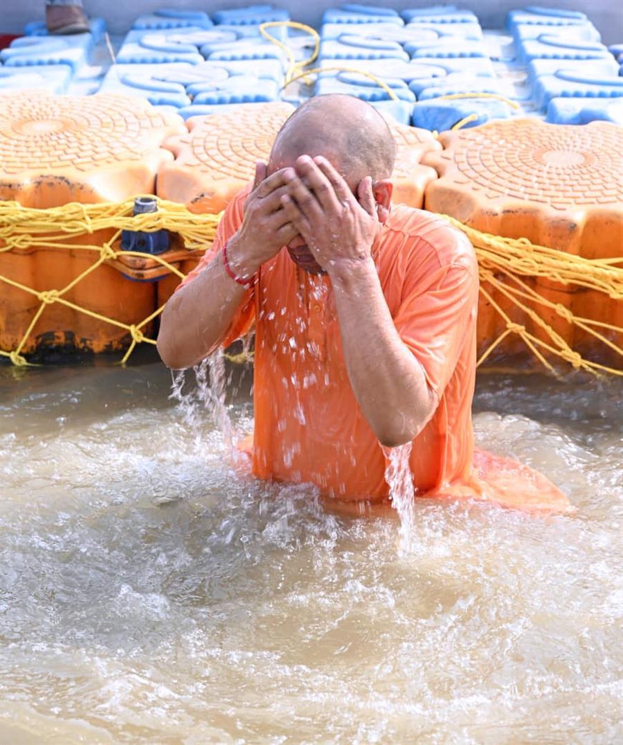 सीएम योगी ने संगम नोज पर किया स्नान, मां गंगा की आरती भी उतारी