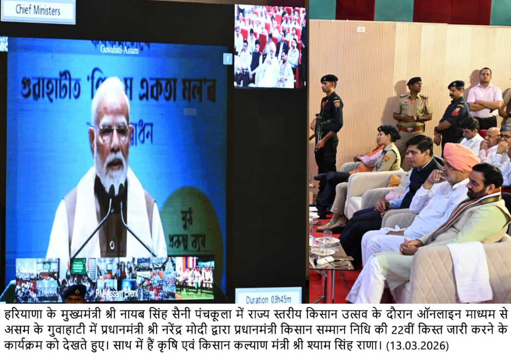 चंडीगढ़, 13 मार्च : प्रधानमंत्री नरेंद्र मोदी ने शुक्रवार को असम के गुवाहाटी में आयोजित कार्यक्रम में प्रधानमंत्री किसान सम्मान निधि योजना की 22वीं किस्त के तहत देश के 9 करोड़ 32 लाख से अधिक किसानों के खातों में 18 हजार 640 करोड़ रूपये की राशि सीधे उनके बैंक खातों में हस्तांतरित की। इसमें हरियाणा के 15 लाख 86 हजार किसानों के खातों में 328 करोड़ रूपये की राशि डाली गई।