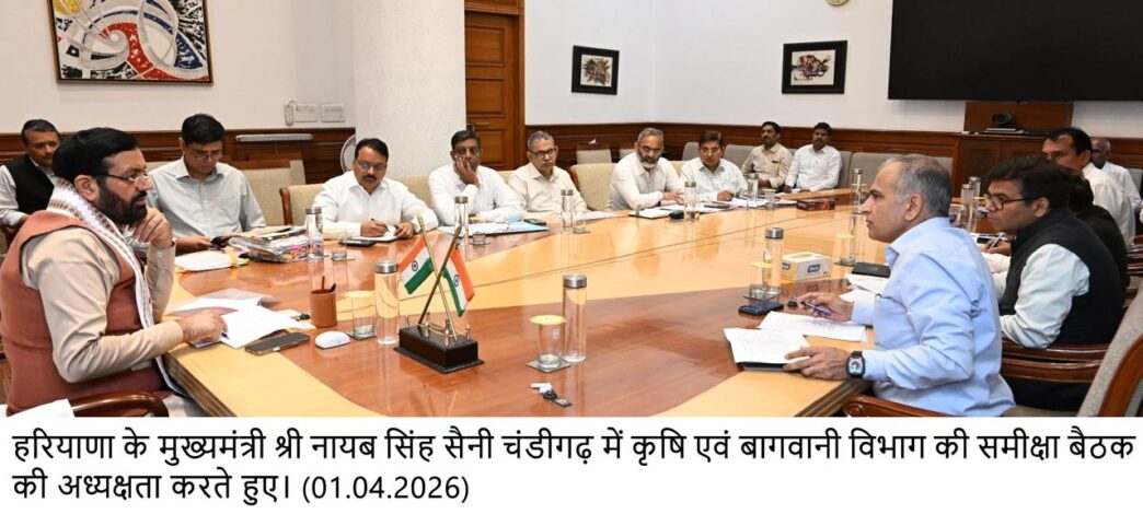 चंडीगढ़, 1 अप्रैल। हरियाणा के मुख्यमंत्री नायब सिंह सैनी ने आज चंडीगढ़ में सिविल सचिवालय में कृषि एवं बागवानी विभाग के अधिकारियों की समीक्षा बैठक में किसानों की आय बढ़ाने के लिए फसल विविधीकरण, बागवानी और उच्च मूल्य वाली फल फसलों के विस्तार पर विशेष जोर दिया। उन्होंने निर्देश दिए कि प्रदेश में मिट्टी और जलवायु के अनुसार क्लस्टर आधारित खेती मॉडल विकसित किया जाए, ताकि किसानों को कम समय में अधिक उत्पादन और बेहतर मूल्य मिल सके।
