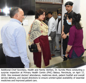 इसके उपरांत, स्वास्थ्य एवं परिवार कल्याण विभाग की अतिरिक्त मुख्य सचिव का अतिरिक्त कार्यभार संभाल रहीं डॉ. सुमिता मिश्रा ने बरवाला के गांव बतौर स्थित प्राथमिक स्वास्थ्य केंद्र (PHC) का औचक निरीक्षण भी किया। उन्होंने मरीजों से बातचीत कर स्वास्थ्य सेवाओं के बारे में फीडबैक लिया।