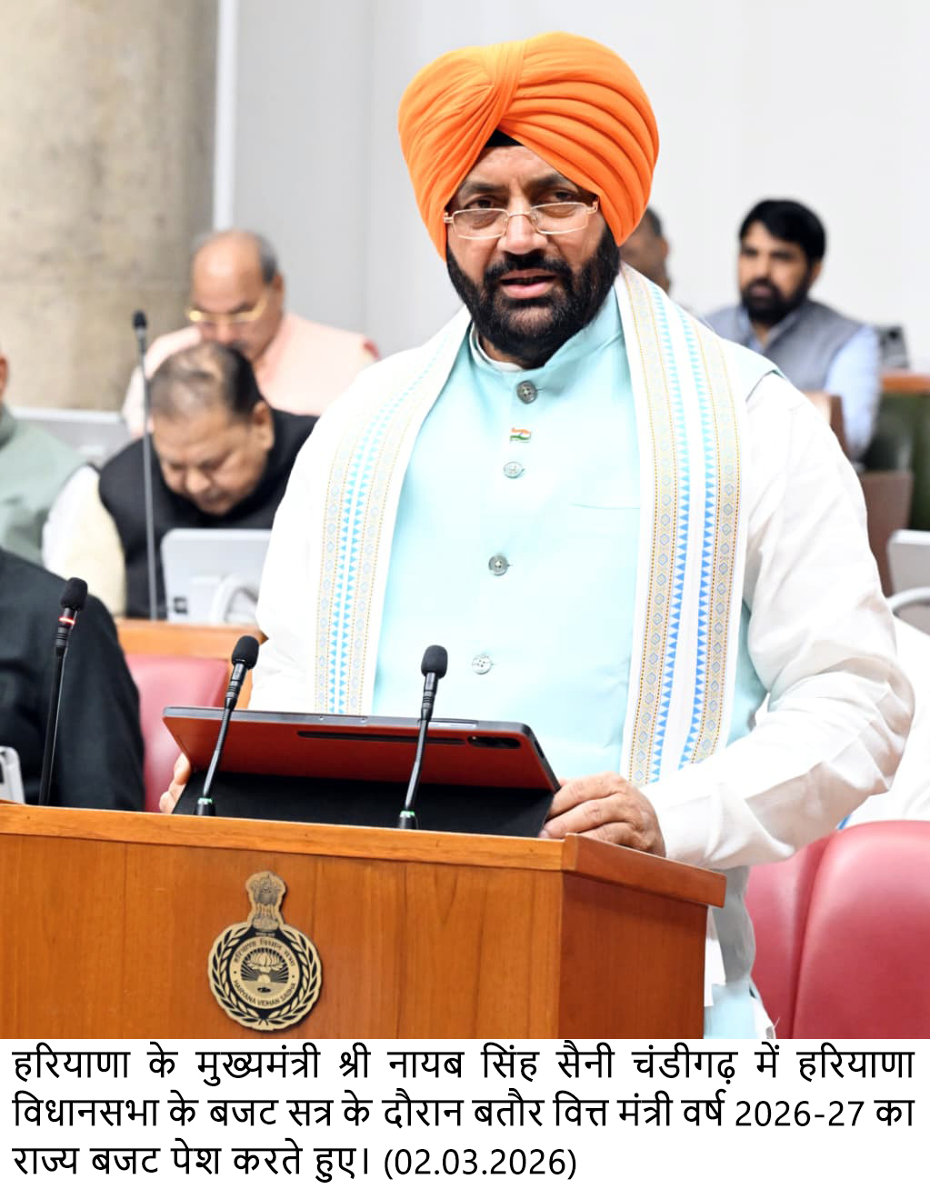 मुख्यमंत्री आज हरियाणा विधानसभा के बजट सत्र के दौरान बतौर वित्त मंत्री राज्य बजट 2026-27 प्रस्तुत कर रहे थे। बजट अनुमानों में सूचना एवं जनसंपर्क, विभाग को वर्ष 2026-27 में 439.71 करोड़ रुपये का आवंटन किया गया है।