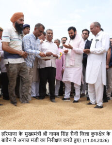 मुख्यमंत्री नायब सिंह सैनी ने बाबैन अनाज मंडी में खरीद प्रक्रिया का लिया जायजा