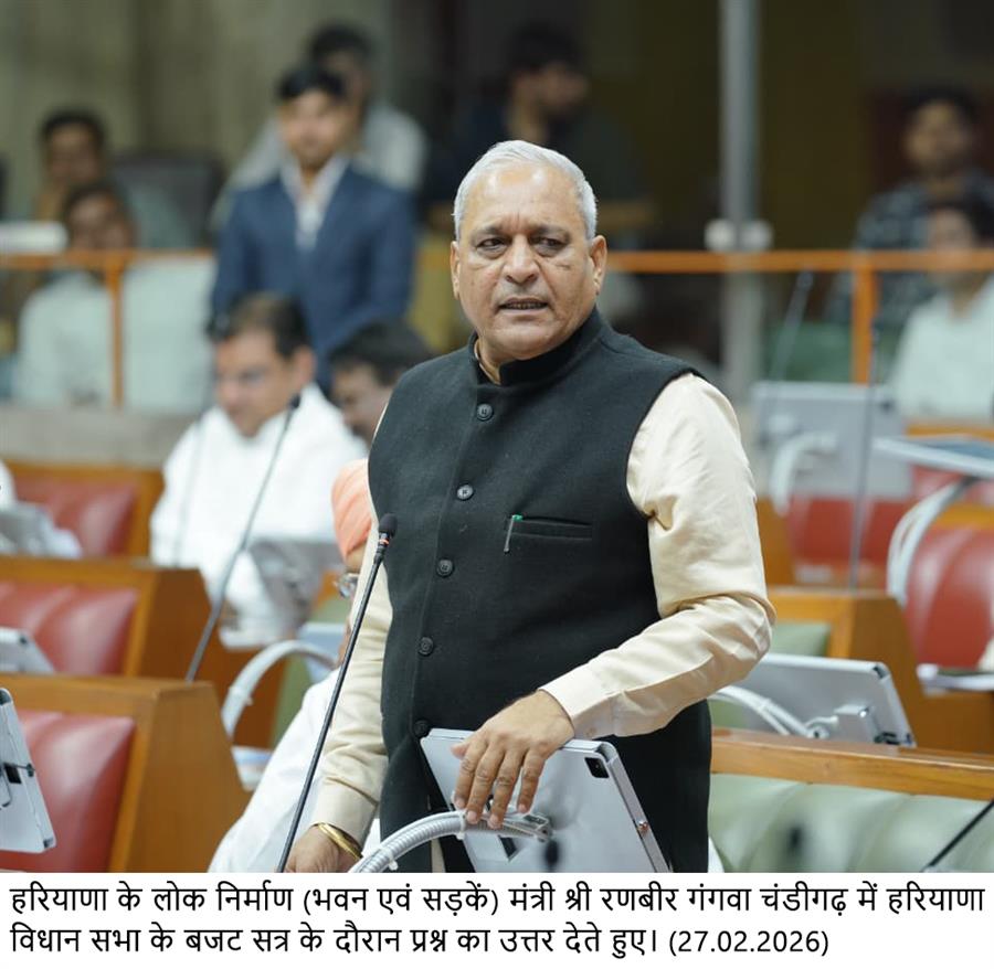 लोक निर्माण (भवन एवं सड़कें) मंत्री रणबीर गंगवा हरियाणा विधानसभा के बजट सत्र के दौरान विधायक भारत भूषण बत्तरा द्वारा पूछे गए प्रश्न का उत्तर दे रहे थे।