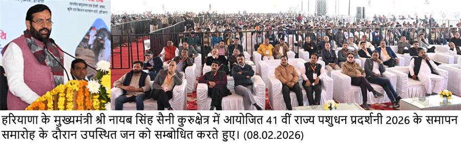 चंडीगढ़, 8 फरवरी : हरियाणा के मुख्यमंत्री नायब सिंह सैनी ने कहा कि प्रधानमंत्री नरेंद्र मोदी के कुशल नेतृत्व में आत्मनिर्भर भारत के संकल्प के साथ देश तेज गति से आगे बढ़ रहा है। ऐसे समय में पशुपालन क्षेत्र की भूमिका और भी अधिक महत्वपूर्ण हो जाती है। दुग्ध उत्पादन, मूल्य संवर्धन, निर्यात संभावनाएं और स्टार्ट-अप संस्कृति में अपार अवसर हैं। प्रदेश सरकार का लक्ष्य पशुपालन को आधुनिक, लाभकारी और टिकाऊ बनाना है। इसी कड़ी में पशु स्वास्थ्य सेवाओं को गांव-गांव तक पहुंचा रहे हैं, उन्नत नस्ल संवर्धन को प्रोत्साहन दिया जा रहा है। दुग्ध संग्रहण और विपणन की मजबूत व्यवस्था की जा रही है। इसके साथ ही प्रशिक्षण और ऋण सुविधाओं का भी विस्तार भी किया जा रहा है। सरकार का पशुपालकों की आय को बढ़ाना, जोखिम घाटे को कम करना और बाजार तक सीधी पहुंच बनाना प्राथमिकता है।