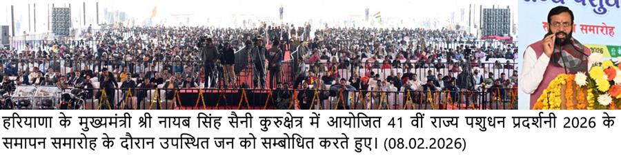 इस मौके पर मुख्यमंत्री श्री नायब सिंह सैनी ने कहा कि यह तीन दिवसीय पशुधन प्रदर्शनी हमारी ग्रामीण संस्कृति, पशुधन परंपरा और आत्मनिर्भर भारत की दिशा में बढ़ते हमारे संकल्प का जीवंत प्रतीक है। धर्म-कुरुक्षेत्र की यह पावन धरा, जो कर्म, कर्तव्य और संतुलन का संदेश देती है, आज पशुपालन और ग्रामीण समृद्धि के संकल्प की साक्षी बनी है।