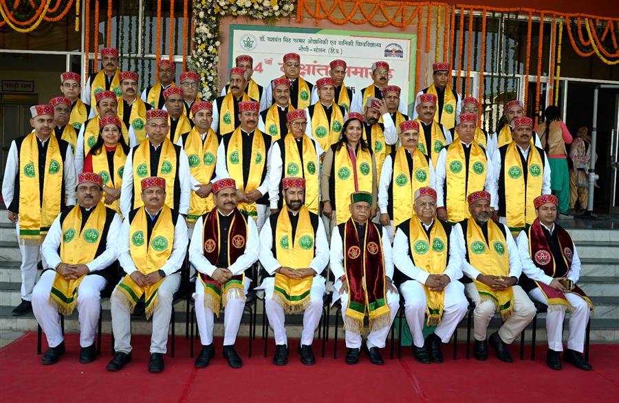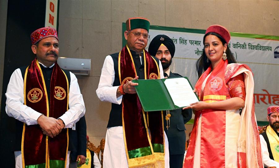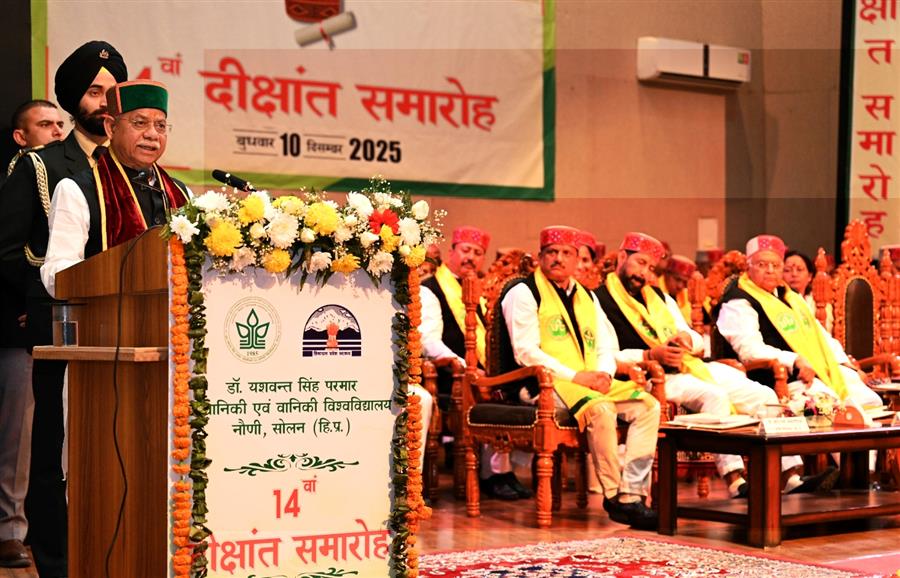 शिमला : हिमाचल प्रदेश के राज्यपाल शिव प्रताप शुक्ल ने जिला सोलन के डॉ. वाई.एस. परमार बागवानी एवं वानिकी विश्वविद्यालय नौणी के 14वें दीक्षांत समारोह की अध्यक्षता की। इस अवसर पर उन्होंने कुल 12 स्वर्ण पदक प्रदान किए, जिनमें 9 स्वर्ण पदक छात्राओं को मिले। इसके अलावा उन्होंने 518 मेधावी छात्रों को प्रमाण पत्र और 855 डिग्रियां प्रदान कीं।