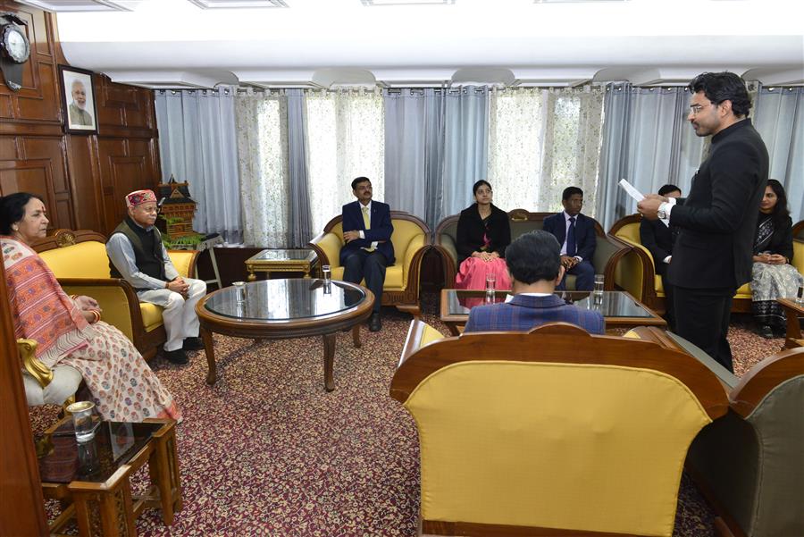 शिमला, 16 जनवरी, 2026 : राज्यपाल शिव प्रताप शुक्ल ने आज लोक भवन में भारतीय लेखा एवं लेखा परीक्षा सेवा (आईए एंड एएएस) 2025 बैच के परिविक्षाधीन अधिकारियों के साथ संवाद किया। संवाद के दौरान राज्यपाल ने लोक सेवा, जवाबदेही तथा शासन में सत्यनिष्ठा के महत्त्व पर अपने विचार साझा किए।
