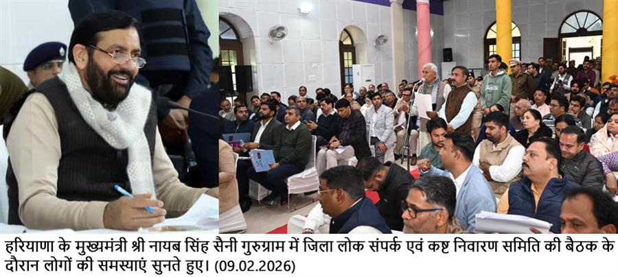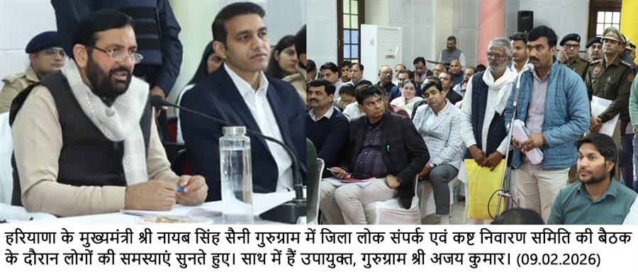 चंडीगढ़, 9 फरवरी : हरियाणा के मुख्यमंत्री नायब सिंह सैनी ने कहा कि अधिकारी जनहित से जुड़े कार्यों को सर्वोच्च प्राथमिकता देते हुए पूरी संवेदनशीलता और जिम्मेदारी के साथ करें तथा किसी भी स्तर पर कोताही न बरती जाए। उन्होंने कहा कि गुरुग्राम के समग्र विकास और आमजन की समस्याओं के समाधान को लेकर सरकार पूरी तरह प्रतिबद्ध है। जिले से जुड़ी प्रत्येक समस्या पर गंभीरता से विचार किया जा रहा है और उनका शीघ्र एवं प्रभावी समाधान सुनिश्चित किया जा रहा है। सरकार निरंतर जन समस्याओं की समीक्षा कर रही है, ताकि लोगों को समय पर राहत मिल सके और विकास कार्यों में गति बनी रहे।