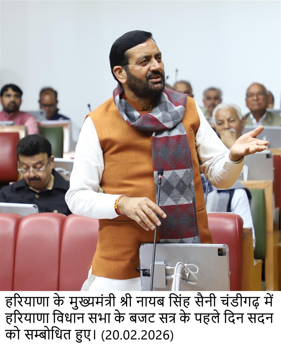 मुख्यमंत्री नायब सिंह सैनी शुक्रवार को बजट सत्र के पहले दिन हरियाणा विधानसभा में सरकारी संकल्प पेश करते हुए बोल रहे थे।