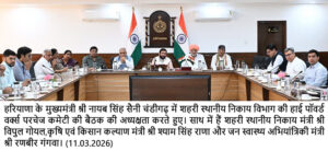 बैठक में मुख्यमंत्री ने गुरूग्राम में स्टोर्म वाटर की निकासी हेतू अशोक विहार से नजदीक भीमगढ खेडी रेलवे कल्वर्ट नम्बर 50 तक आरसीसी मास्टर ड्रेन बनाने की स्वीकृति प्रदान की। इस कार्य पर लगभग 17.60 करोड़ की लागत आएगी। फरीदाबाद में लगभग 41.84 करोड़ रुपए की लागत से 20 एमएलडी सिवरेज ट्रीटमेंट प्लांट बनाने के कार्य के लिए भी टेण्डर प्रक्रिया पूरी की गई ।